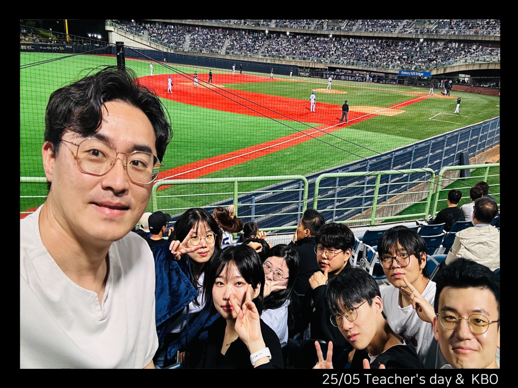 지난 5월 15일, 스승의 날을 맞아 포항 야구장에서 진행된 삼성 라이온즈 vs KT 위즈 경기를 모두 다같이 관람하였습니다. 맛있는 치킨, 음료와 함께 열띤 응원을 펼치며 즐겁게 하루를 마무리하였습니다.