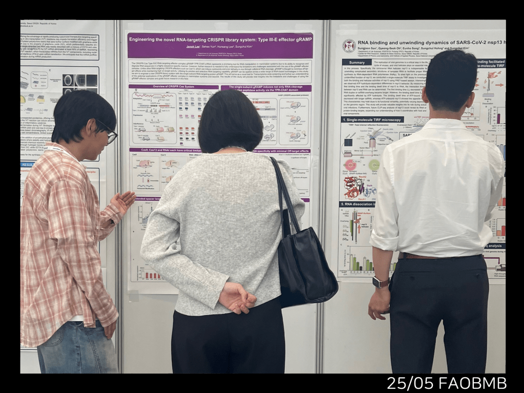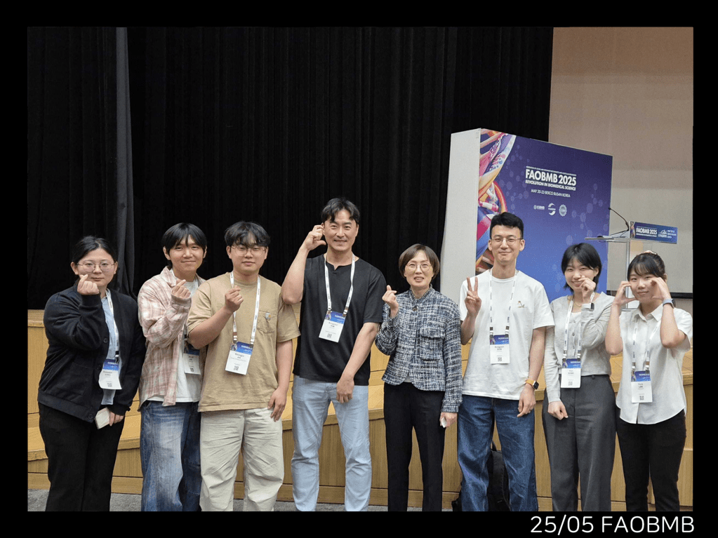 On May, we participated in 2025 FAOBMB – held in BEXCO, Busan-si. Seongjun Son, Seongjin An, Yuri Song, Yura Lee, Jenoh Lee had poster session about their own research concept.