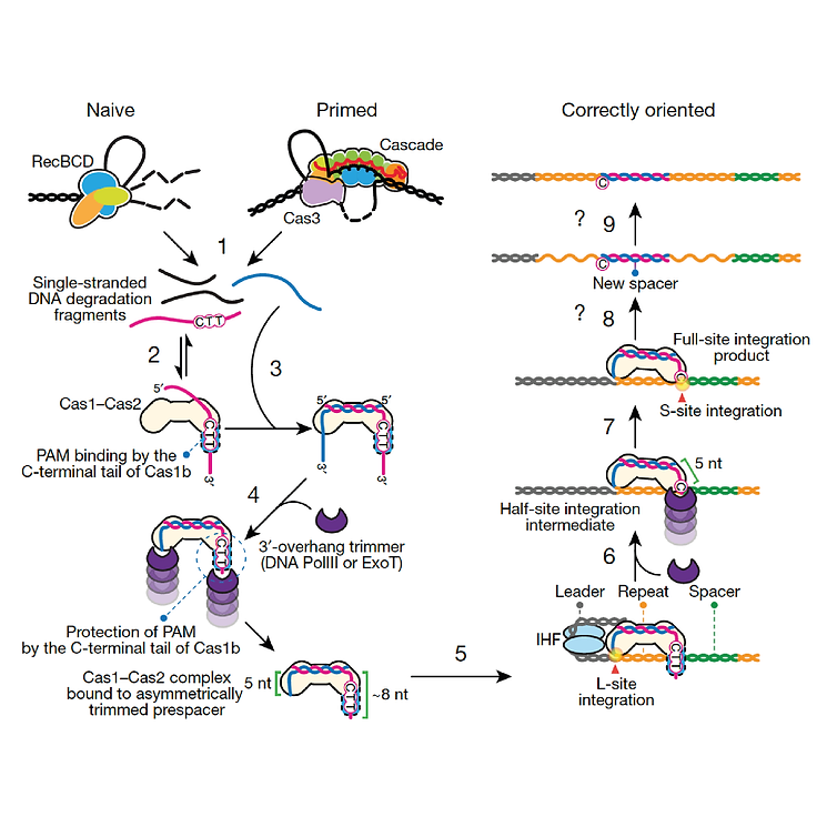 Selective prespacer loading and processing for precise CRISPR adaptation