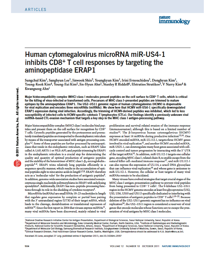 Sungchul Kim*, Daekwan Seo*, Dongwoo Kim, Yujin Hong, Hyeshik Chang, Daehyun Baek, V. Narry Kim, Sungwook Lee, and Kwangseog Ahn